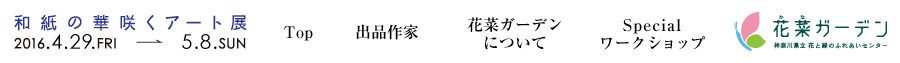 日本全国にさまざまな種類がある「和紙」。主な原料はコウゾ、ミツマタ、ガンピなどの植物です。2014年には「石州半紙」「本美濃紙」「細川紙」の3種が『和紙:日本の手漉和紙技術』としてユネスコ無形文化遺産に登録されました。和紙は、世界に誇るべき「日本の伝統文化」です。 〈和紙の華咲くアート展〉は、和紙をテーマにしたアート・エキシビション。日本の伝統と芸術を世界に発信するものです。 花と緑があふれる『花菜ガーデン』で、和紙とアートを融合させた特別エキシビションをお楽しみください。